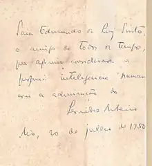 Dedicatória aposta ao livro Afranio Peixoto, de autoria de Leonídio Ribeiro: