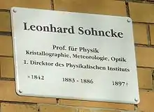 - «Öffentliche Samstagsvorlesung an der Universität Jena zum Thema "Leonhard Sohnke und seine Beiträge zur Kristallographie, Meteorologie und Optik".» (em alemão)