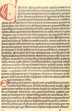 Os soberanos de Arborea, contrariando os ideais aragoneses, promulgaram um novo regime legal nos seus territórios, que estavam num estado de turbulência política perpétua. A legislação distinguiu-se como parte de uma política mais vasta que visa o desenvolvimento de Arborea e foi julgado significativamente avançado sobre o tempo jurídico e administrativo.