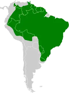 Ocorre na América do Sul, da Colômbia, Venezuela e Guianas ao nordeste da Argentina, Uruguai e em grande parte do Brasil. Existem várias subespécies, entre elas L. r. hellmayrii, encontrada em Trinidad e Tobago e na Venezuela (Península de Paria).