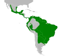 É residente do sul do Texas, nos Estados Unidos, México e América Central, até o oeste do Peru e Argentina central. Também nidifica nas ilhas ao norte da América do Sul, incluindo Trinidad e Tobago e Antilhas Holandesas.