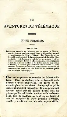 A primeira página do primeiro livro Les Aventures de Télémaque