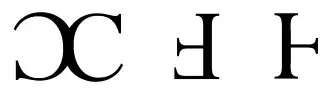 - Ↄ ou ↃϹ/X (antisigma) para substituir BS e PS, assim x se destacou para CS e GS. A forma desta letra é disputada, no entanto, uma vez que nenhum rolamento de inscrição foi encontrado. Franz Bücheler identificou -o como a variante do numeral romano ↄ,[2] Mas os filólogos do século XX, trabalhando com cópias dos livros de Prisciano, acreditam que se assemelha a dois Cs ligados (ↄ+ϲ), que era uma variante preexistente do grego sigma, e facilmente confundido Para X por escritores posteriores. Revilo P. Oliver argumentou que Claudius teria baseado esta Letra sobre a variante arcadiana de Ψ psi (GrGl Psi ou GrGl – forma.[1]Esta Letra não deve ser confundida com a letra "Open O" ɔ.
