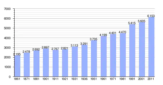 | Variação demográfica do município entre 1861 e 2011[3] |