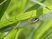 Leucauge argyra, conhecida como aranha-de-mandíbula-longa, é uma aranha e é conhecida por ser a hospedeira da Hymenoepimecis argyraphaga, uma vespa parasitóide.[1]