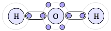 Ligação covalente ou molecular é aquela onde os átomos possuem a tendência de compartilhar os elétrons de sua camada de valência, ou seja, de sua camada mais instável. Neste tipo de ligação não há a formação de íons, pois as estruturas formadas são eletronicamente neutras, como o exemplo abaixo, da água. O átomo de oxigênio (O) necessita de dois elétrons para ficar estável e o H irá compartilhar seu elétron com o O. Sendo assim o O ainda necessita de um elétron para se estabilizar, então é preciso de mais um H e esse H compartilha seu elétron com o O, estabilizando-o. Sendo assim é formado uma molécula o H2O.