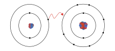 Se estes processos estão interligados, ou seja, o(s) elétron(s) perdido(s) pelo metal é(são) ganho(s) pelo ametal, então, seria "como se fosse" que, na ligação iônica, houvesse a formação de íons devido à "transferência" de elétrons do metal para o ametal.[5] Esta analogia simplista é muito utilizada no Ensino Médio, que destaca que a ligação iônica é a única em que ocorre a transferência de elétrons. A regra do octeto pode ser utilizada para explicar de forma simples o que ocorre na ligação iônica. Exemplo: Antes da formação da ligação iônica entre um átomo de sódio e cloro, as camadas eletrônicas se encontram da seguinte forma: