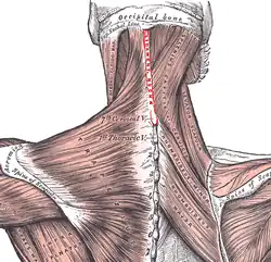 Ligamento da nuca (ligamentum nuchae em latim) é um septo bilaminar fibroelástico intermuscular, que se inicia na protuberância externa do occipital, passa no tubérculo posterior do arco posterior do atlas, segue pelo aspecto medial das apófises espinhosas bifidas de C2 até C7, fixando-se depois no ápice superior da apófise espinhosa de C7. [1]