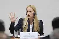 Em 7 de maio de 2015, esteve diante da Comissão de Relações Exteriores e de Defesa Nacional do Senado Federal do Brasil[8] acompanhada por Mitzy Capriles (esposa do prefeito de Caracas, Antonio Ledezma, também preso por fazer oposição ao governo) e Rosa Orozco, mãe de uma manifestante morta.[9] As três cidadãs venezuelanas expuseram aos senadores brasileiros a situação de seu país e, definiram o regime lá em vigor como uma ditadura.[9] Em suas declarações, denunciaram o aumento dos crimes violentos, a crise econômica, o desabastecimento de produtos de primeira necessidade e, o desrespeito aos direitos humanos praticados pelo governo venezuelano.[8]