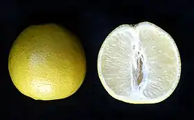 .[4] O fruto se torna amarelo-alaranjado quando fica maduro.[5] O suco contém geralmente menos de 0,1% de ácido cítrico: o sabor muito leve do suco é popular no Oriente Médio e na Índia, mas menos no mundo ocidental.[6]