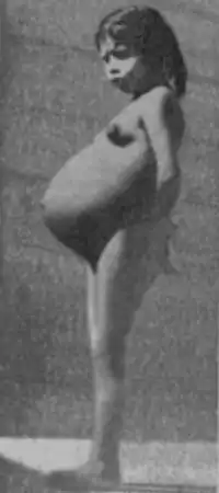 Esse caso foi reportado em detalhe pelo Dr. Edmundo Escomel para La Presse Medicale, junto com os detalhes adicionais de que sua menarca teria ocorrido aos 8 meses de idade e seus seios proeminentes começarem a ser desenvolvidos aos 4 anos. Aos 5 anos, sua aparência demonstrava alargamento pélvico e maturação óssea avançada.