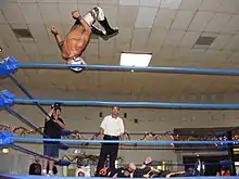 - Corkscrew somersault leg drop[3]