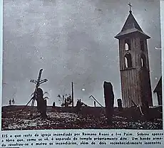 Em 4 de outubro de 1950, quando ainda se contavam os votos das eleições municipais daquele ano, outro incêndio ocorreu. Desta vez, a Igreja católica, também de madeira, foi queimada. O padre Roberto Ebbert rezou uma missa no barracão anexo à igreja, pregando que "quem queimou a nossa igreja tem que morrer queimado"[3][4]. Na madrugada seguinte, de 6 para 7 de outubro, o alvo foi a serraria Domingos Baldissera & Irmãos Ltda. Um pequeno incêndio teve início e os irmãos Baldissera prontamente acudiram, debelando o fogo. Um suspeito havia sido visto durante a tarde anterior nas cercanias. O fato foi comunicado ao delegado.