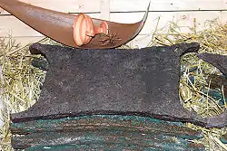 Um molde para a fundição de um lingote couro de bronze foi descoberto no palácio de Ras Ibn Hani na Síria. É feito com grãos finos de "ramleh", calcário "cheio de conchas". Arqueólogos encontraram gotas de cobre queimados em todo o molde.[43] Apesar da questionável durabilidade do calcário, Paul Craddock et al. concluíram que calcário pode ser usado para a fundição de formas simples grandes tais como os lingotes couro de boi.[44] Liberação de dióxido de carbono do calcário danificaria a superfície do metal que tocava o molde, assim, os objetos metálicos que requerem detalhes na superfície não podem ser produzidos com sucesso.[45] Isto não é dizer que os lingotes couro de boi eram geralmente fundidos em moldes de calcário. Usando um molde de argila experimental, Bass et al. afirmam que o lado liso do lingote estava em contato com o molde enquanto seu lado rugoso foi exposto à atmosfera. A rugosidade resulta da interação da atmosfera e do resfriamento do metal.[46]