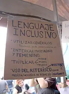 Historicamente, o uso de pronomes masculinos no lugar de genérico (desconhecido, não especificado, irrelevante ou indeterminado) era considerado não sexista, mas várias formas de linguagem neutra em gênero se tornaram uma característica comum nas versões escrita e falada de muitas línguas no final do século XX. As feministas argumentam que anteriormente a prática de atribuir "gênero masculino" a antecedentes genéricos se originava da linguagem, refletindo "os preconceitos da sociedade em que evoluiu, e o inglês evoluiu durante a maior parte de sua história em uma sociedade patriarcal centrada no homem".[48] Durante a década de 1970, as feministas Casey Miller e Kate Swift criaram um manual, The Handbook of Nonsexist Writing, sobre linguagem neutra em termos de gênero, que foi criada para reformar a linguagem sexista existente que, segundo se diz, exclui e desumaniza as mulheres.[49] Nos anos 80, muitos esforços feministas foram feitos para reformar a linguagem androcêntrica e binarista.[50] Em alguns ambientes acadêmicos e governamentais, tornou-se comum contar com uma linguagem neutra em termos de gênero para transmitir a inclusão de todos os sexos ou gêneros (linguagem inclusiva de gênero).[51][52][53]