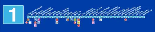 - «Línea 1, Estaciones & Horarios» (em espanhol), visitado em 21 de agosto de 2009