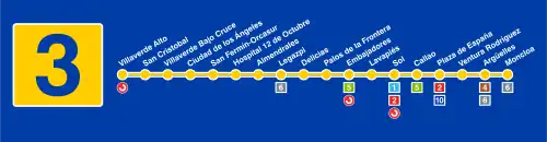 A Linha 3 - Amarela do Metro de Madrid tem um comprimento de 15,1 km com 18 estações.[1] [2]