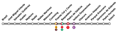 | Cumming[nota 2] | est. 2028 | Av. Mapocho com Av. Ricardo Cumming | Santiago | Em construção | ||