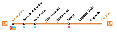 O L9 Nord atualmente opera entre Can Zam e La Sagrera. Quando a obra estiver concluída, ele viajará entre Can Zam e o Aeroporto T1.
