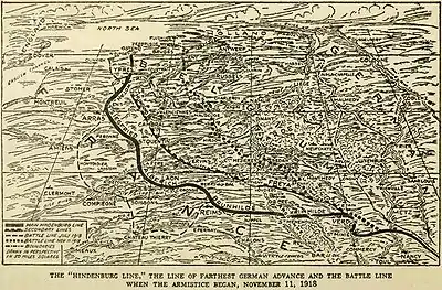Em 4 de outubro, o governo alemão solicitou um armistício e, em 8 de outubro, os exércitos alemães receberam ordens de se retirar do restante da Siegfriedstellung (Linha Hindenburg).[5]
