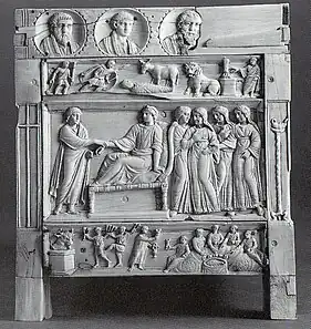 No entanto, estudos recentes propuseram que o caixão de fato mostra um programa coerente e cuidadosamente pensado, compreendendo cenas do Antigo e do Novo Testamento, embora os objetivos subjacentes a isso tenham sido interpretados de forma diferente. Muitas das cenas são muito raramente retratadas na arte sobrevivente, e várias tiveram novas identificações propostas nas últimas décadas[12].
