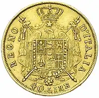 Moeda de quarenta liras do reino napoleônico da Itália.