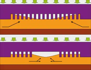 Diferente dos métodos de nanoimpressão mencionados acima, a nanoimpressão térmica direta sem resiste não requer uma etapa de gravação extra para transferir padrões de resinas de impressão para a camada do dispositivo.