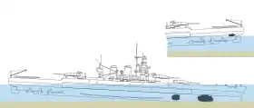 | Armamento | 9 canhões de 381 mm 12 canhões de 152 mm 4 canhões de 120 mm 12 canhões antiaéreos de 90 mm 20 canhões antiaéreos de 37 mm 24 canhões antiaéreos de 20 mm |