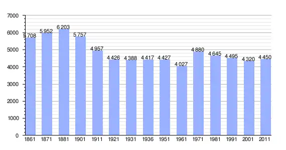 | Variação demográfica do município entre 1861 e 2011[3] |
