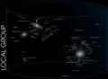 | Grupo Local | 3 Mpc[lower-alpha 1] | 9.26×1019 | 19.97 | Grupo de pelo menos 80 galáxias das quais a Via Láctea faz parte. Dominado por Andrômeda (a maior), Via Láctea e o Triângulo; o restante são galáxias anãs. | [39] |