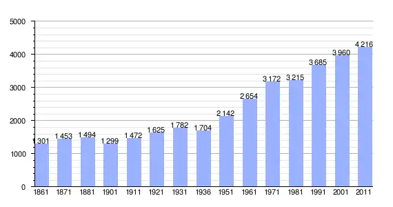 | Variação demográfica do município entre 1861 e 2011[3] |