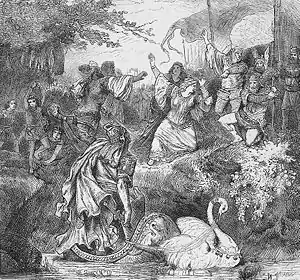O cavaleiro derrota Telramund num duelo, provando assim sua proteção divina e a inocência da princesa. Entretanto, poupa a vida do perdedor, declara Elsa inocente e a pede em casamento.