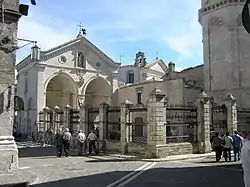![]() Santuário de São Miguel Arcanjo. Uma parte da torre é visível no lado direito | |