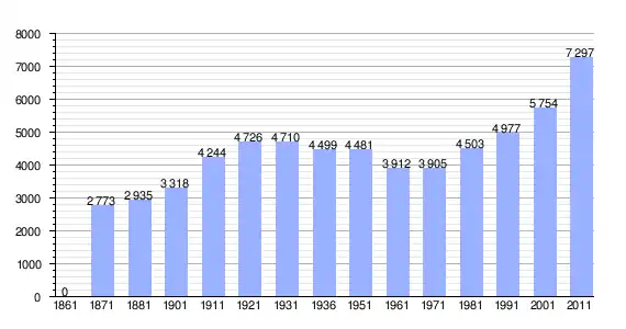 | Variação demográfica do município entre 1861 e 2011[3] |