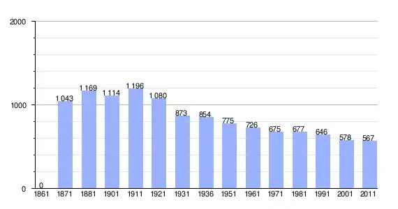 | Variação demográfica do município entre 1861 e 2011[3] |