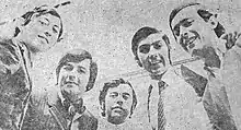 Los Angeles Negros, uma banda chilena. Da esquerda para a direita: Germaín de la Fuente, Luis Ortíz, Jorge González, Mario Gutiérrez e Miguel Ángel "Nano" Concha