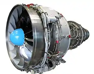 O motor possui um fan de estágio único com 29 pás de titânio e um revestimento de Kevlar, girado por uma turbina de três estágios. O compressor de baixa pressão com seis estágios era produzido de titânio, girado por uma turbina de baixa pressão de único estágio não refrigerada. O compressor de alta pressão com sete estágios e pás de aço eram giradas por uma turbina de alta pressão, também de aço.