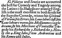 Excerto de Palladis Tamia (1598) referindo-se à Love's Labour's Won.