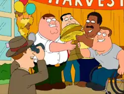 Para a parada do festival de colheita anual de Quahog com carros alegóricos, o tema do episódio de Who's the Boss?, no qual Tony vê Angela nua no chuveiro, é aleatoriamente escolhido por Peter.