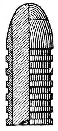 Outra solução para o problema foi desenvolvida pela Smith & Wesson no início do século XX, a "S&W self-lubricating bullet".[5]