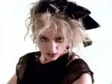 O sinal para a moda de Madonna começou com o videoclipe de "Lucky Star". No vídeo, Madonna usava uma roupa toda preta com perneiras, botas de tornozelo e barriga nua, com o cabelo desarrumado amarrado em uma fita preta flexível. Juntou-se a uma minissaia preta brilhante, um brinco na orelha direita, luvas e pulseiras de borracha. A amiga de Madonna, Erika Belle, foi creditada com o design da roupa, embora a biógrafa Mary Cross tenha notado que Madonna estava usando sua roupa do dia-a-dia.[19] Mary Lambert, então graduada na Escola de Design de Rhode Island, foi escolhida para dirigir o vídeo. No entanto, Arthur Pierson a substituiu como diretora.[20] A Warner Bros. deu a Pierson um pequeno orçamento para fazer o vídeo, filmado em uma tarde.[20] O irmão da vida real de Madonna, Christopher Ciccone, é um dançarino de fundo no vídeo. Em seu livro Life with My Sister Madonna, ele diz que, embora tenha recebido apenas US$ 200 para dançar no vídeo, na época ele estava "feliz por fazer parte dele".[21] O vídeo começa com o close do rosto de Madonna, enquanto ela desliza os óculos escuros pelo nariz. Essa cena foi uma referência ao personagem Lolita no filme de Stanley Kubrick de 1962, com o mesmo nome, e Audrey Hepburn no filme Breakfast at Tiffany (1961).[22] A imagem então desbota para branco, denotando o brilho das estrelas celestes e depois se recomeça em cores. Madonna é mostrada dançando contra um fundo branco liso, junto com close-up de seu olhar hipnotizado. Ela é acompanhada por Belle e seu irmão Christopher, como dançarinos de apoio.[19] O vídeo termina com a imagem inicial em preto-e-branco repetida, mas em retrógrado, conforme Madonna coloca os óculos de sol. A retirada e colocação desses óculos de sol forneceu uma moldura para conter a música, funcionando como uma cortina que marca a abertura e o fechamento de uma performance de palco.[22]