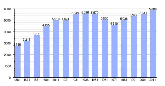 | Variação demográfica do município entre 1861 e 2011[3] |