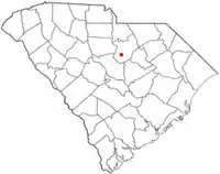 O diagrama seguinte representa as localidades num raio de 28 km ao redor de Lugoff.
