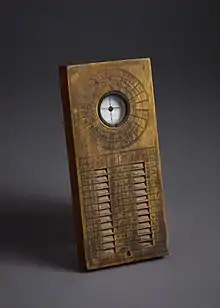 Os precursores mais antigos do luopan são o 式 ou 式盘 , que significa astrolábio ou tábua de adivinhação - também chamada de liuren astrolábes [6] desenterrada de tumbas que datam entre 278 aC e 209 aC. Esses astrolábios consistem em uma placa lacada de dois lados com linhas de visão astronômicas . Juntamente com a adivinhação para Da Liu Ren, as pranchas eram comumente usadas para traçar o movimento de Taiyi pelos nove palácios. [7] [8] As marcações são praticamente inalteradas desde o shi até as primeiras bússolas magnéticas. [6] O esquema da placa de aterramento, da placa celeste e das linhas de grade faz parte do diagrama geométrico dos "dois cabos e quatro ganchos" ( 二繩四鉤 ) em uso desde pelo menos o período dos Reinos Combatentes . [6] O zhinan zhen, ou agulha que aponta para o sul, é a bússola magnética original e foi desenvolvido para o Feng Shui. [1] Apresentava o diagrama de dois cabos e quatro ganchos, marcadores de direção e uma colher magnetizada no centro.
