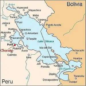 ![]() Localização de Chucuito, capital da província inca dos Lupacas, e Cutimbo, a capital pré-inca. | |||||||||