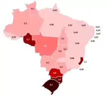 O desenvolvimento do luteranismo no Brasil se intensificou na Região Sul, além do estabelecimento de pequenas capelas nos quatro estados da Região Sudeste.[2] Na Região Norte, o luteranismo é mais forte no estado de Rondônia, onde foi apresentado em 23 de julho de 1970 pelo Pastor Joachim Maruhn.[13] Atualmente, estima-se que exista entre 1 e 1,5 milhões de luteranos no Brasil, conforme aponta distribuição na tabela ao lado.[6][14][15]