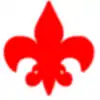 | Um gobo com este formato (à esquerda), numa instalação com gel vermelho, produzirá um padrão semelhante ao mostrado à direita. | |
