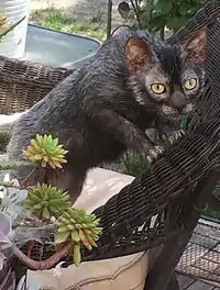 O Lykoi é um gato parcialmente ou quase completamente sem pelos que é geneticamente distinto do Sphynx. A sua pelagem é única em aparência e se assemelha ao revestimento de um gambá. O padrão é um pelo sólido e preto, uma cabeça em forma de cunha e um corpo sem excesso de massa. O Lykoi é considerado amigável em seu comportamento. Eles exibem um alto nível de carinho com seus donos.[3]