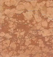 É una rocha calcária nodular que se pode polir. Contém fósseis de amonites e belemnites e apresenta-se geologicamente em estratos das formações denominadas Rosso Ammonitico Veronese ou Scaglia rossa.