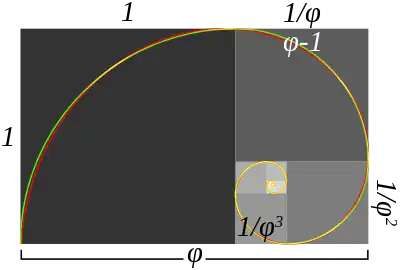 A espiral de ouro é uma espiral logarítmica cujo fator de crescimento b está relacionado a φ, a média metálica de 1. Mais especificamente, a espiral de ouro fica mais larga (cada vez mais a partir de sua origem) para um fator de &phi a cada quarto de volta que ela dá. A equação polar para a espiral de ouro é a mesma d outras espirais logarítmicas, mas como o valor especial de b: [22]